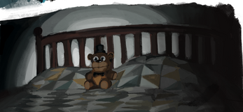 There are 2 Fnaf artworks of mine inside , it took along time to make like 1,000 hours , so yh :) .1 item Bonnie and 1 item Teddy bear Freddy sittin on the bed. Pls im rissing for a new computer :)