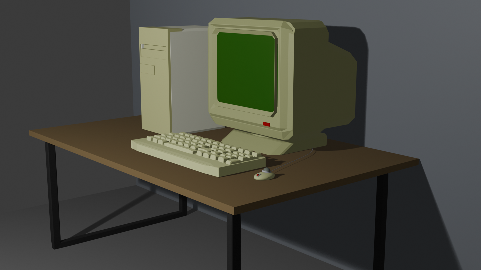 A retro style computer asset!! .My asset contain(old style monitor, keyboard, alternate mouse and a wooden